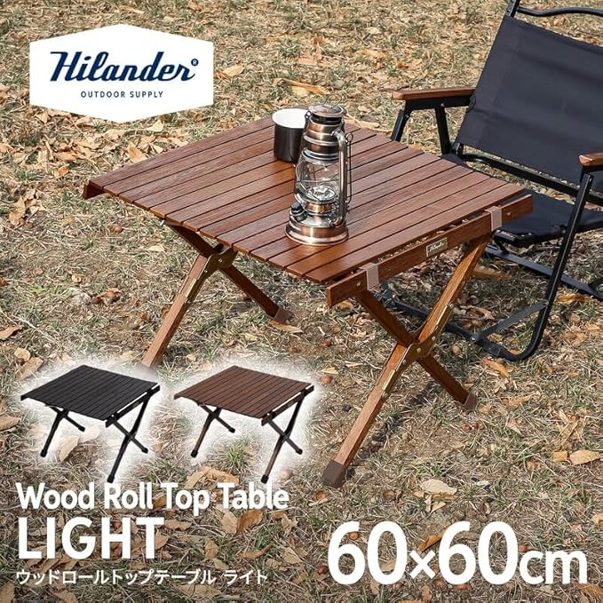 Hilander(ハイランダー) ウッドロールトップテーブルLIGHT60 DB/GOLD ダークブラウン ゴールド キャンプ アウトドア ロールテーブル 天然 ソロテーブル コンパクト おしゃれ
