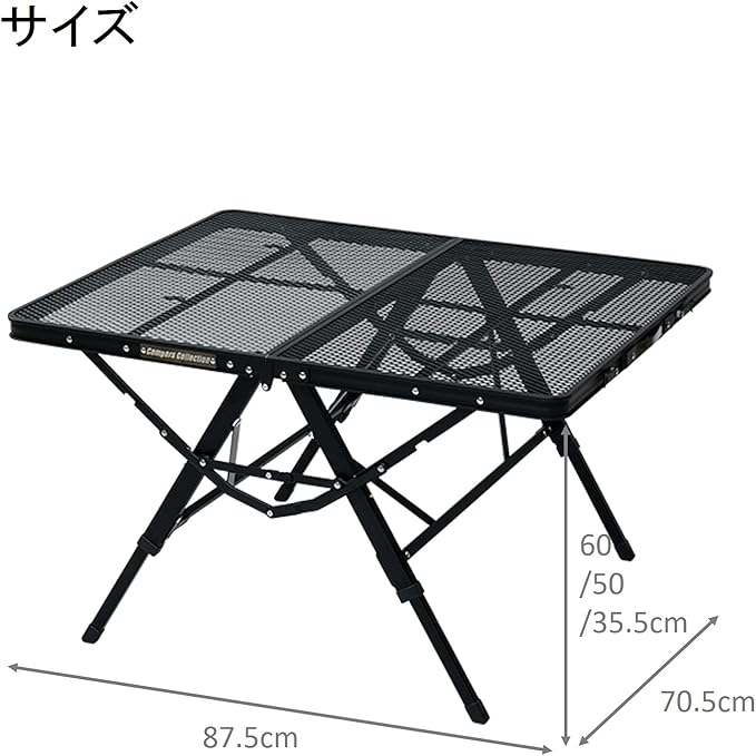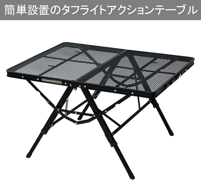 [キャンパーズコレクション 山善] メッシュテーブル キャンプ アウトドア (焚き火 バーベキュー) 熱・水に強い 折りたたみ式 軽量 高さ3段階 タフライトアクションテーブル TAT