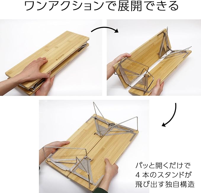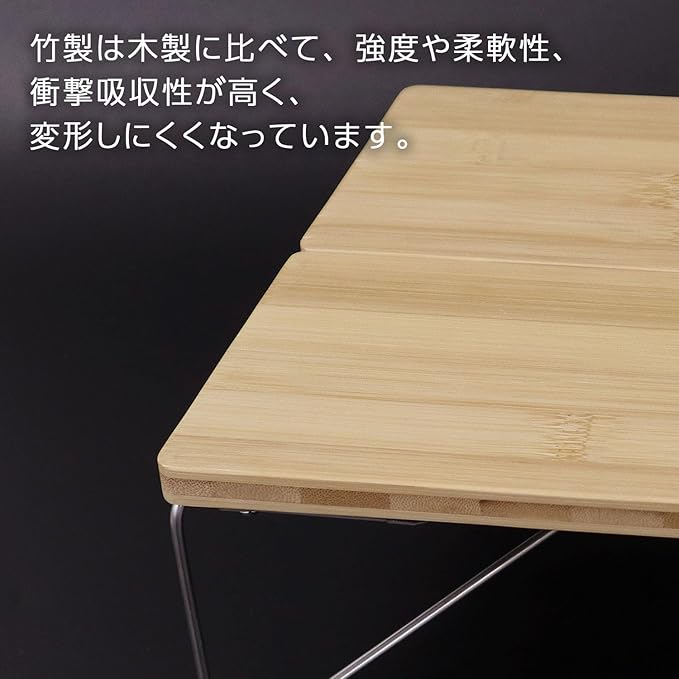 ●竹製の天板で、ナチュラルな風合いをアウトドアに。