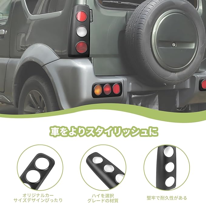 【適合車種】 ANTC車用車車用リアフォグランプライトカバー/ジムニー テールランプシェードはスズキ ジムニー jb64w jb74wに適しています。 ご購入の前に、お使いの機種に適合しているかご確認ください。