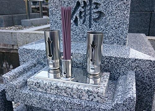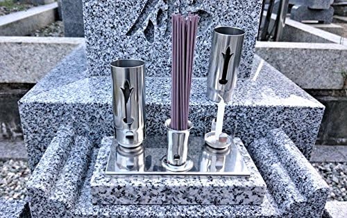 【お墓用】お線香立てローソク立てセット 高級みかげ石の台座付き 台座の重みで強風でも倒れません飛んで行きません お仏壇 お地蔵様にも
