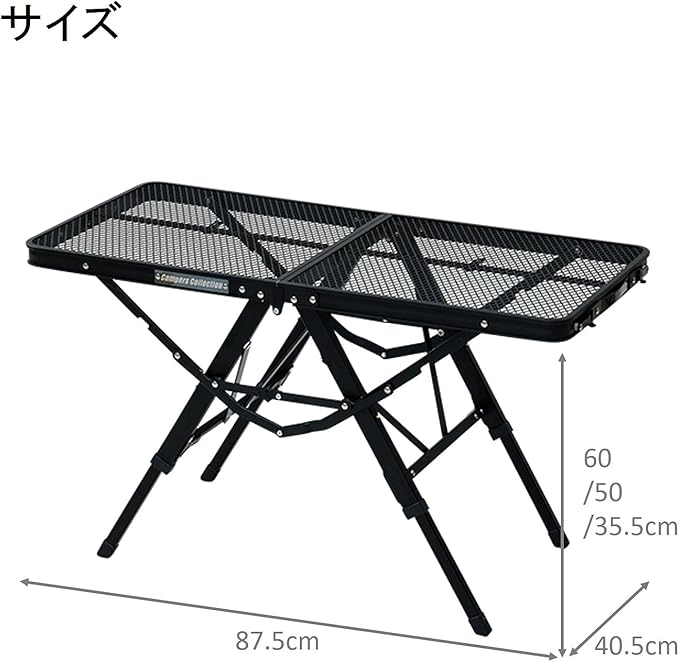 [キャンパーズコレクション 山善] メッシュテーブル キャンプ アウトドア (焚き火 バーベキュー) 熱・水に強い 折りたたみ式 軽量 高さ3段階 タフライトアクションテーブル TAT