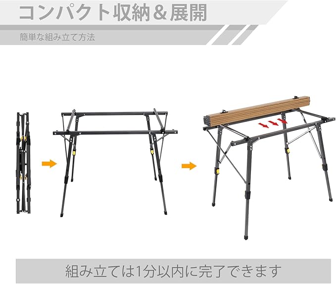 ●【いろんなシーン利用できます】レジャーテーブルとして:キャンプ 釣り テント泊 バーベキュー(BBQ) ピクニック 焚き火 運動会 スポーツ観戦 ビーチ レジャー 花見 海水浴 ビーチ 公園 テラス; 折り畳みテーブルとして自宅勤務に室内用でもとても便利です。