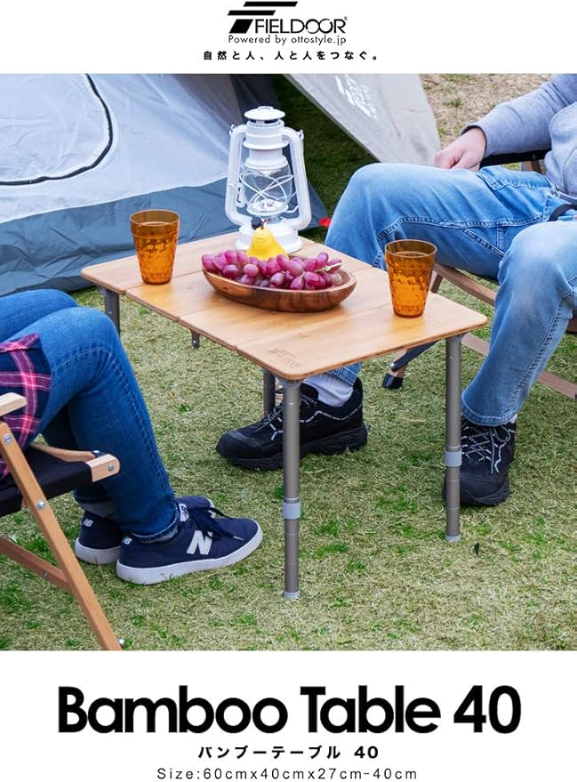 FIELDOOR レジャーテーブル 折りたたみ バンブーテーブル コンパクト収納 収納バッグ付 キャンプ アウトドア バーベキュー