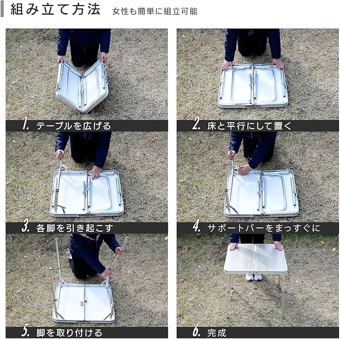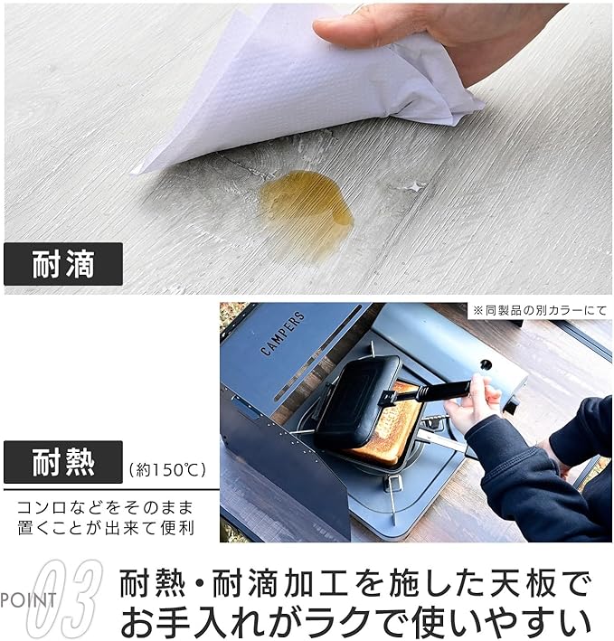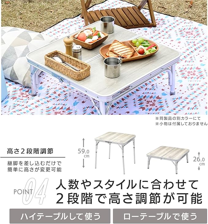 [キャンパーズコレクション 山善] アウトドア テーブル キャンプ アウトドア 熱・水に強い 折りたたみ式 軽量 高さ調整(2段階) 幅60 奥行60 高さ37.5/70cm ホワイト木目 YAT-6060(BWH)