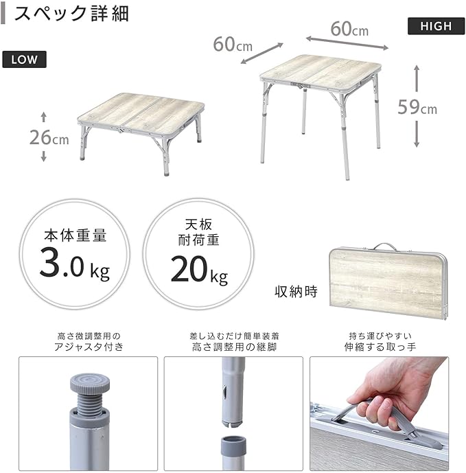 [本体サイズ]幅60 奥行60 高さ26/59cm 重量3kg