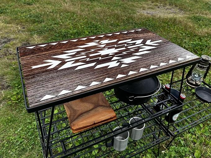 天然桐材を使用しており、DIY風に仕上げたオルテガ柄のフィールドラック用テーブルトップの天板