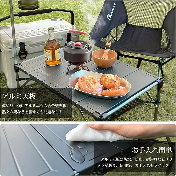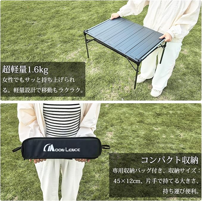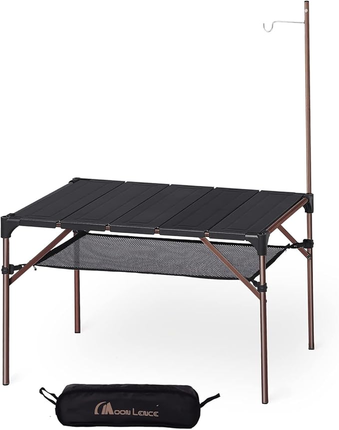 MOON LENCE キャンプ テーブル アルミニウム合金 ロールテーブル ランタンハンガー付き アウトドア ハイキング BBQ 折りたたみ式 コンパクト 超軽量