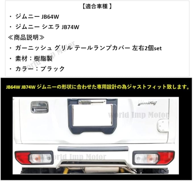 ✅ SUZUKI 用 JIMNY JB64W JB74W ガーニッシュ グリル テール ランプ カバー 左右2個セット 社外品です。 ✅ 純正テールランプに貼り付けて装着する、テールランプベゼル(リム)です。テールランプがビシッと締まります。 ✅ ジムニーシエラ(1,500cc)にも取り付け可能で、車検も対応しております。