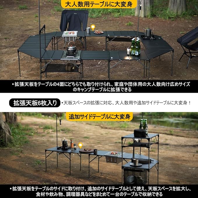 自由に拡張:拡張天板をテーブルの4面にどちらでも取り付けられ、天板スペースを拡張し、大人数用や追加サイドテーブルに変身可能です!