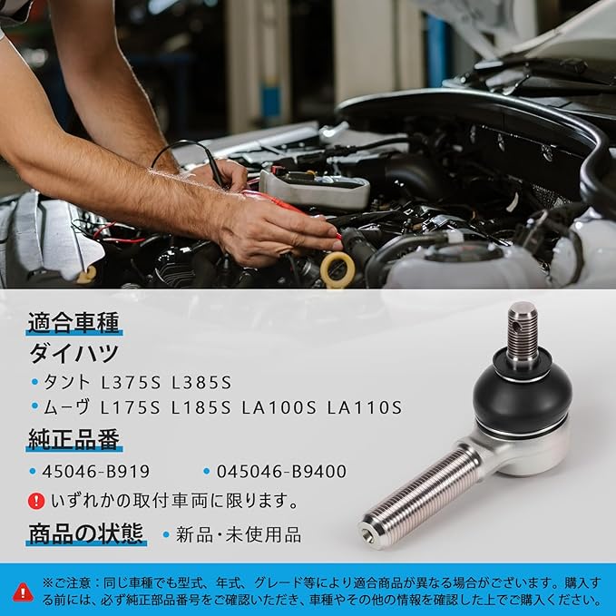 【商品説明】本製品は、ジムニー(JB23W JB33W JB43W)などに適合する高品質なタイロッドエンドです。耐久性に優れた素材を採用し、純正同等のフィッティング精度を実現しています。ステアリング操作の応答性を回復させ、異音やガタつきを解消する効果が期待できます。