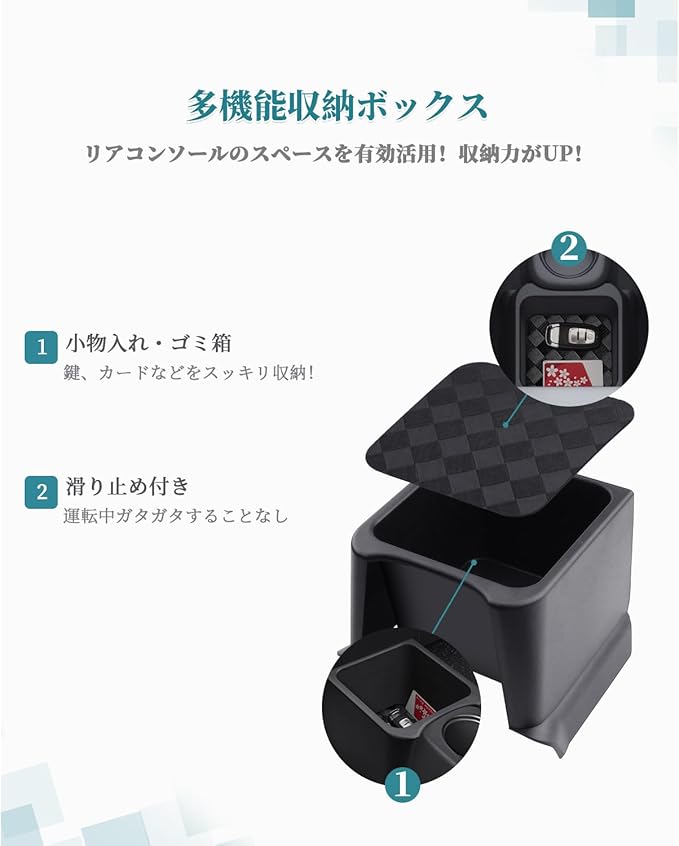 【収納不足を解消・ゴミ箱に活用】ジムニーjb23にぴったりのリアコンソールトレイで、リアコンソールのスペースを最大限に活用し、収納力を大幅に向上させ、スマホ、カード、コイン、メガネや鍵など、小物関係の収納には最高です。それに、取り外し可能なゴミ箱としてはゴミを捨てる悩みを解決し、汚れが付いたら水洗いでも便利です。優れたABS材質で変形しにくいです。
