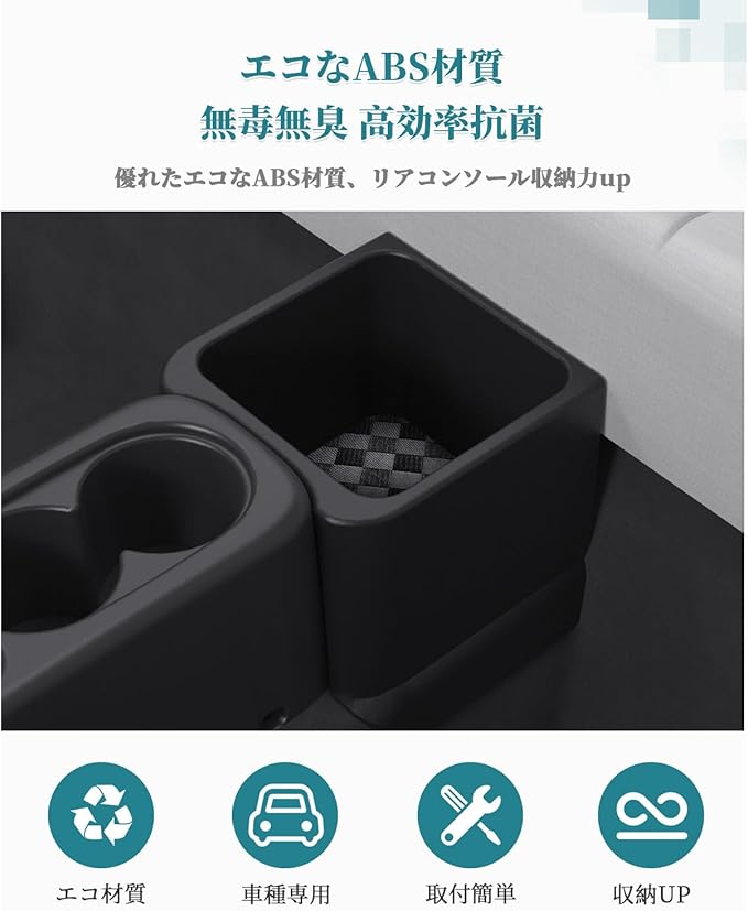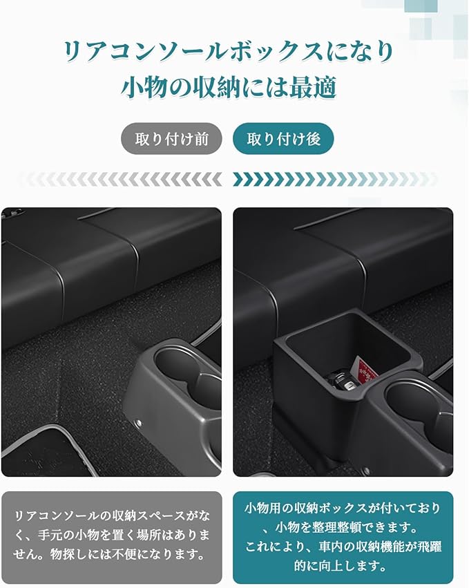 【工具不要!簡単取り付け&取り外し可能】面倒な工具や両面テープは不要!後部座席とセンターコンソールの間に挟み込むだけで、わずか1分で設置完了です。後部座席の使用時に邪魔になったら、すぐに取り外せるので、自由度が高くて便利です。