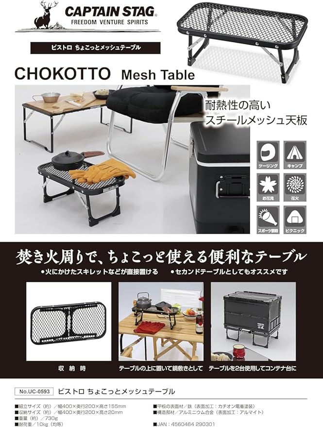 キャプテンスタッグ(CAPTAIN STAG) アウトドアテーブル ちょこっとメッシュテーブル UC-590/UC-593