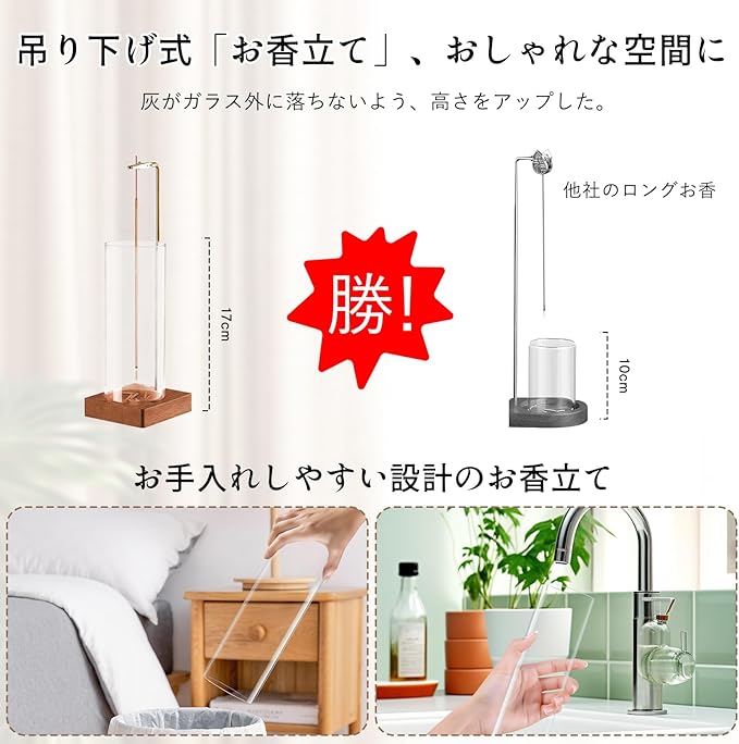 【 ️灰こぼれ防止仕様】お香立て 灰がこぼれないを徹底実現!通常品より高さを強化した耐熱ガラスカップが、線香立てとしての使用時に線香の灰をしっかりキャッチ。最後まで燃焼しても灰が外に散らばる心配がなく、机やカーペットを汚さず、清潔で安心した香道体験を楽しめます。掃除の手間も大幅削減し、毎回の香りタイムを「煩わしさゼロ」で過ごせます。