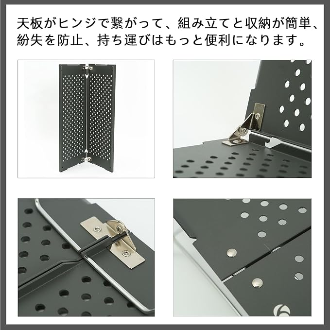 【メッシュ天板・超軽量490g】天板は穴があったユニークなデザインで、重量はわずか490gでと軽量化されており、バックパッキング、ハイキング、ソロキャンプなどのアウトドア活動に非常に適しています。