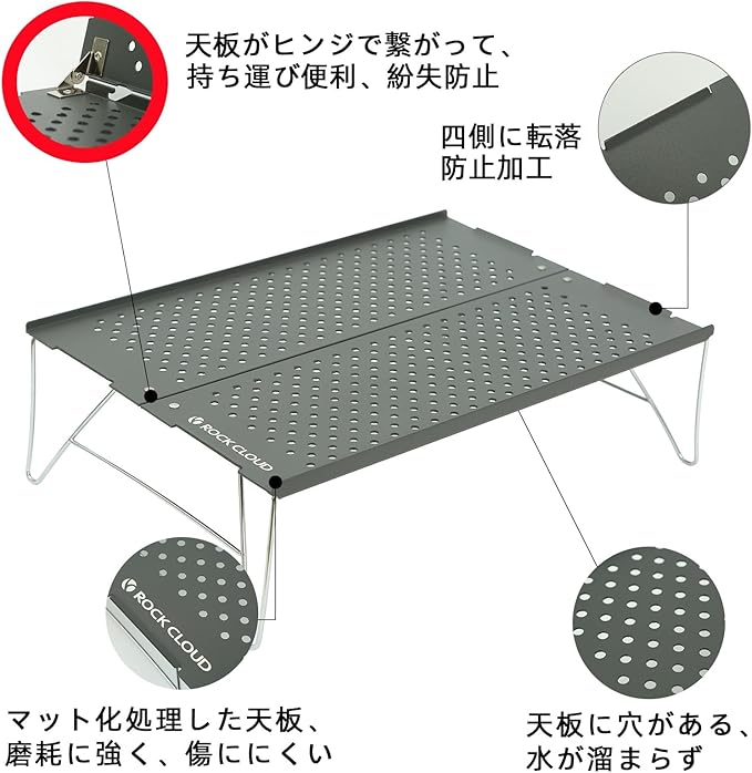 ROCK CLOUD アウトドア テーブル 天板一体 ミニテーブル 折り畳み テーブル 耐荷重15kg 登山 テーブル サイクリング コンパクト 超軽量 簡易テーブル アウトドア 水漏れ 天板パンチ