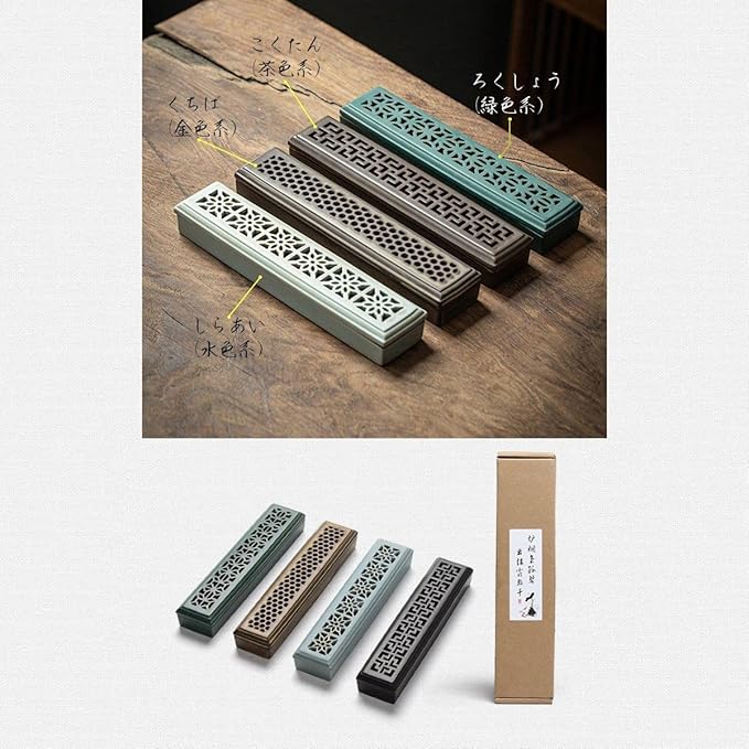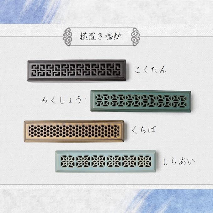 香炉 線香立て インセンスホルダー 陶器 横置き レトロモダン 線香 お香 アロマ 透かし模様 かわいい (ろくしょう)