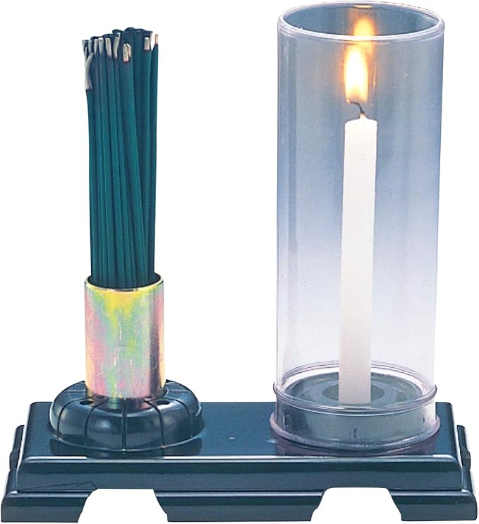 風が吹いても消えない屋外用ローソク立てと線香立てのセット。