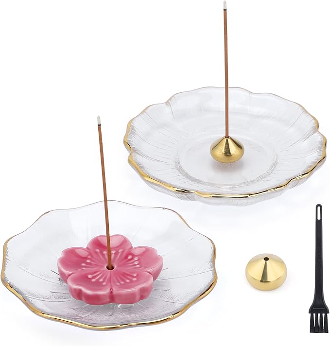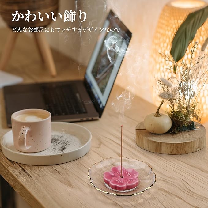 Segarty お香立て 蓮の花香皿 ガラス製 桜ホルダーと水滴真鍮ホルダー付属 和風お香スタンド 香炉 気の浄化 疲労軽減 ストレス緩和 集中力 ヨガの練習 茶道 瞑想 線香立て ミニ おこうたて お香立て おしゃれ 北欧 かわいい