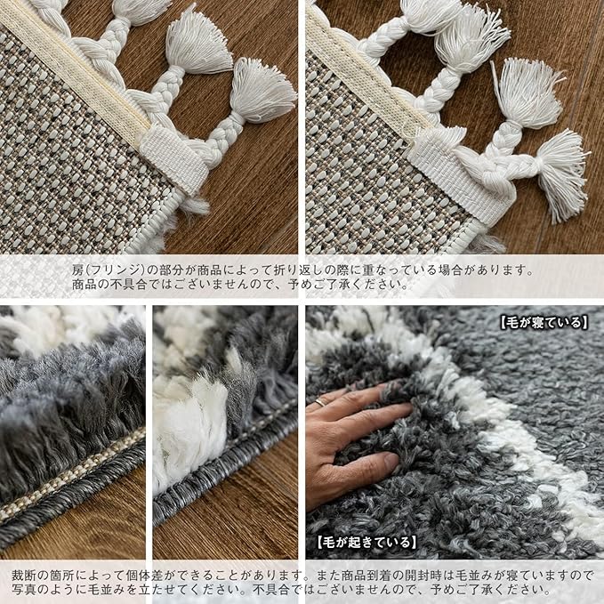 【輸入カーペットを安心してご利用いただくためのお願い】 ●輸入ラグに関して ※同じ商品でも製造ロットの違いによって、サイズや、色味、柄模様の左右が反転していたり、位置がズレている場合がございます。ただし、現地の工場や倉庫での検品をクリアした商品を輸入しています。あらかじめご了承くださいませ。/ ●においに関して ※ご使用当初、裏面に塗られる仕上げの接着塗料(ラテックス剤)のにおいがする場合がございます。人体への影響はありませんが、においに敏感の方や、ご心配の方はご理解の上ご購入お願いいたします。開封後常温のもとで気化(蒸発)するため、においはご使用につれてなくなります。気になる場合は風通しの良いところで陰干ししていただきますと、より早く解消されます。/ ●サイズに関して ※カーペットの製法上、表示サイズより0~3%の誤差がございます。/ ※いずれも商品の初期不良ではございませんので返品・交換は行なっておりません。(※お客様で返品の送料ご負担によるキャンセルは、返品規定に基づきお受けさせていただきます。)/ ※裏面の製品シールは剥がさないでご使用ください。