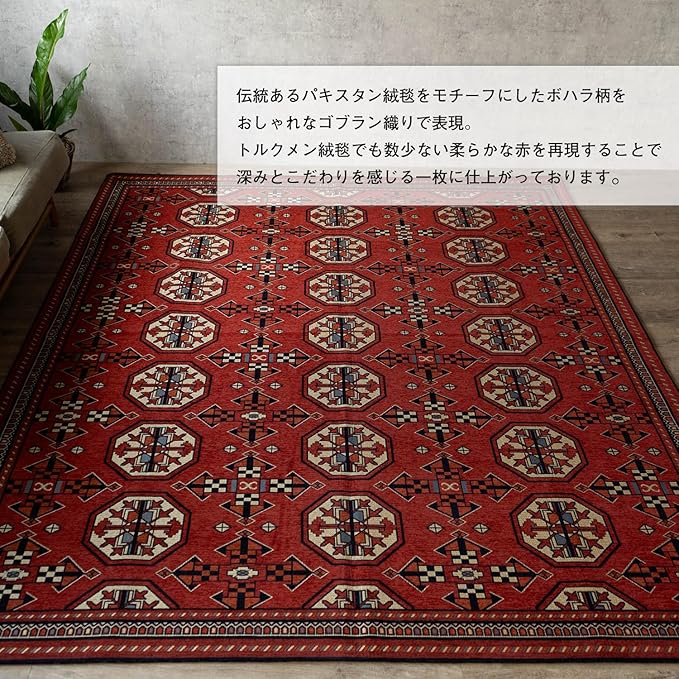 サヤンサヤン カルド ボハラ トルクメン風 ラグ カーペット 200 200 レッド ゴブラン織り