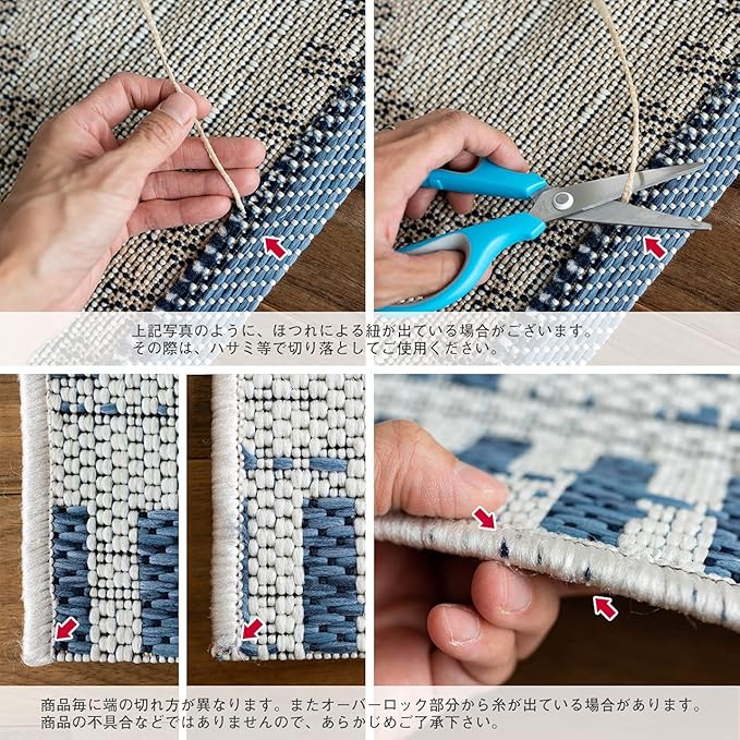 【輸入カーペットを安心してご利用いただくためのお願い】 ●輸入ラグに関して ※同じ商品でも製造ロットの違いによって、サイズや、色味、柄模様の左右が反転していたり、位置がズレている場合がございます。ただし、現地の工場や倉庫での検品をクリアした商品を輸入しています。あらかじめご了承くださいませ。/ ●においに関して ※ご使用当初、裏面に塗られる仕上げの接着塗料(ラテックス剤)のにおいがする場合がございます。人体への影響はありませんが、においに敏感の方や、ご心配の方はご理解の上ご購入お願いいたします。開封後常温のもとで気化(蒸発)するため、においはご使用につれてなくなります。気になる場合は風通しの良いところで陰干ししていただきますと、より早く解消されます。/ ●サイズに関して ※カーペットの製法上、表示サイズより0~3%の誤差がございます。/ ※いずれも商品の初期不良ではございませんので返品・交換は行なっておりません。(※お客様で返品の送料ご負担によるキャンセルは、返品規定に基づきお受けさせていただきます。)/ ※裏面の製品シールは剥がさないでご使用ください。