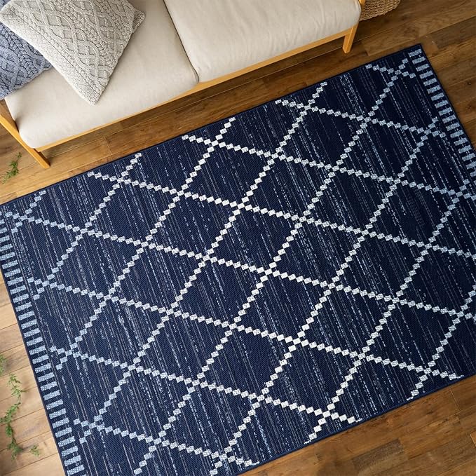 サヤンサヤン 幾何学 ベニワレン風 ラグ カーペット トリコ 194 250 3畳 ブルー ベルギー