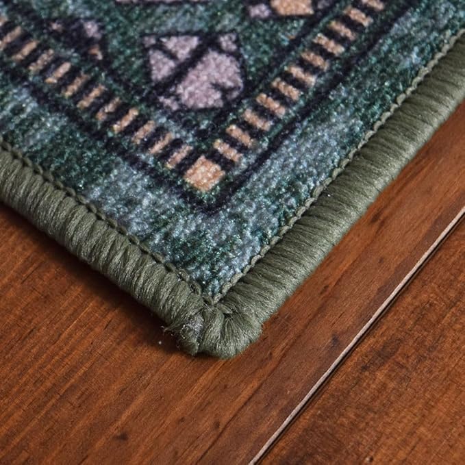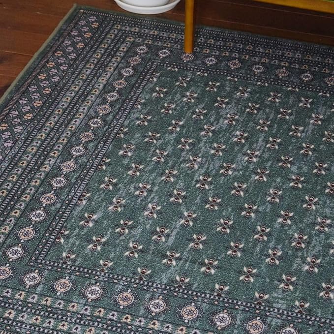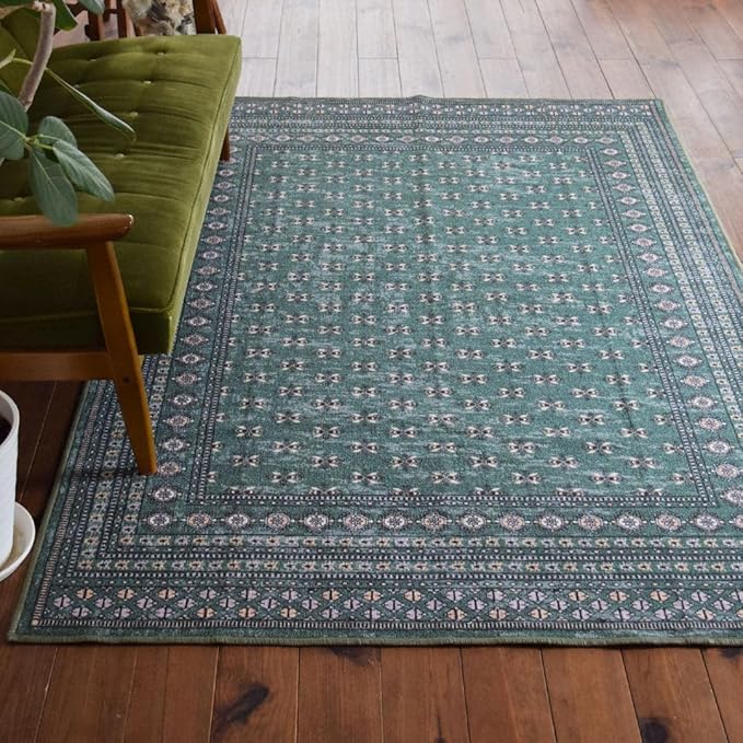 TOCO LIFE おしゃれで洗えるラグマット カーペット ブハラ ヴィンテージ風 4サイズ 1畳 1.5畳 2畳 2.5畳 滑り止め 速乾 床暖可 ホットカーペット対応 (グリーン, 200 200cm)