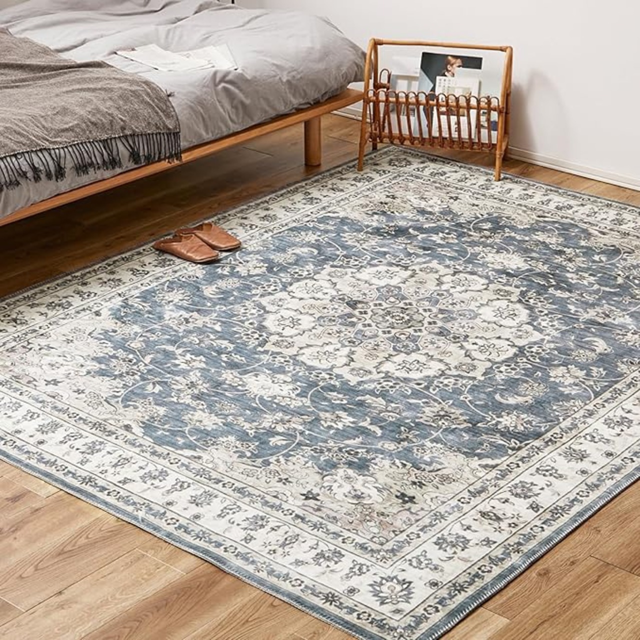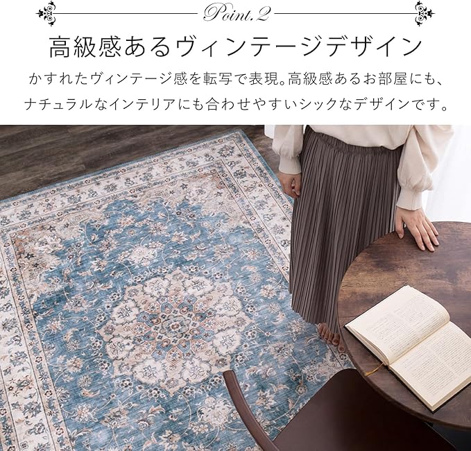 なめらかなフランネル生地に、小さな模様やかすれ感を細部までプリントで表現した、まるで高級絨毯のようなデザインの一枚。毛足が短く、さらさらした肌触りの良い感触です。自宅で洗えるので汚れても安心。いつでも清潔にお使いいただけます。