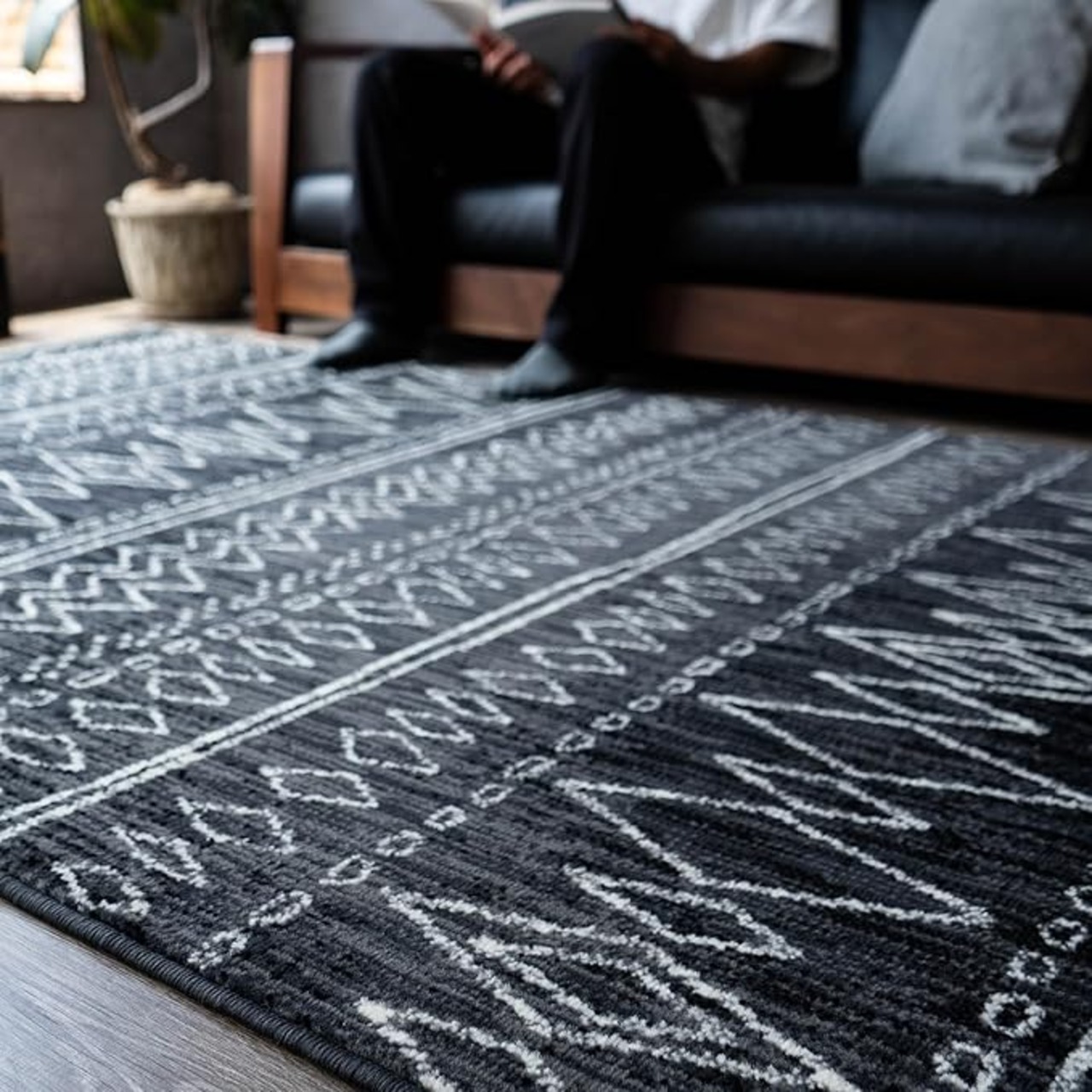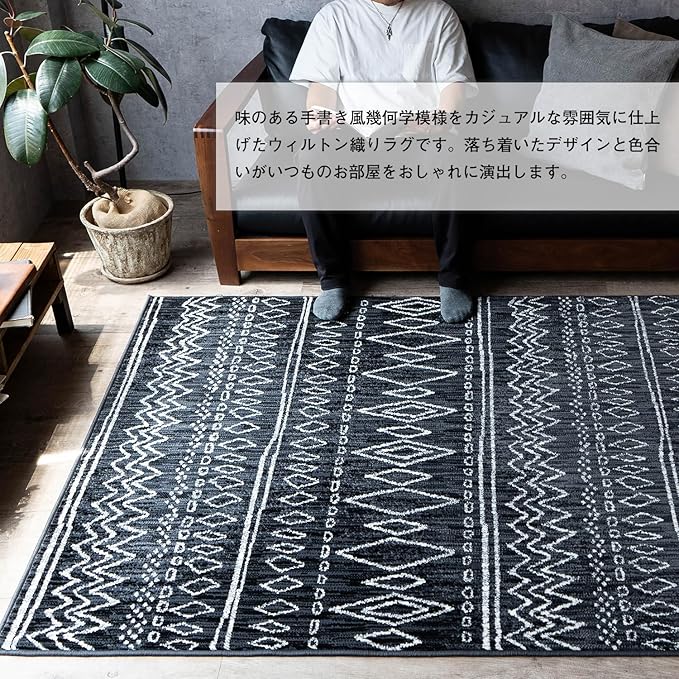 サヤンサヤン 幾何学 ラグ ステッチライン 200x250 3畳 ダークグレー ウィルトン ベルギー