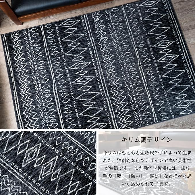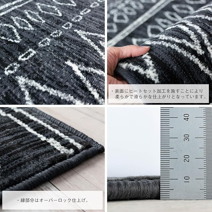 【輸入カーペットを安心してご利用いただくためのお願い】 ●輸入ラグに関して ※同じ商品でも製造ロットの違いによって、サイズや、色味、柄模様の左右が反転していたり、位置がズレている場合がございます。ただし、現地の工場や倉庫での検品をクリアした商品を輸入しています。あらかじめご了承くださいませ。/ ●においに関して ※ご使用当初、裏面に塗られる仕上げの接着塗料(ラテックス剤)のにおいがする場合がございます。人体への影響はありませんが、においに敏感の方や、ご心配の方はご理解の上ご購入お願いいたします。開封後常温のもとで気化(蒸発)するため、においはご使用につれてなくなります。気になる場合は風通しの良いところで陰干ししていただきますと、より早く解消されます。/ ●サイズに関して ※カーペットの製法上、表示サイズより0~3%の誤差がございます。/ ※いずれも商品の初期不良ではございませんので返品・交換は行なっておりません。(※お客様で返品の送料ご負担によるキャンセルは、返品規定に基づきお受けさせていただきます。)/ ※裏面の製品シールは剥がさないでご使用ください。