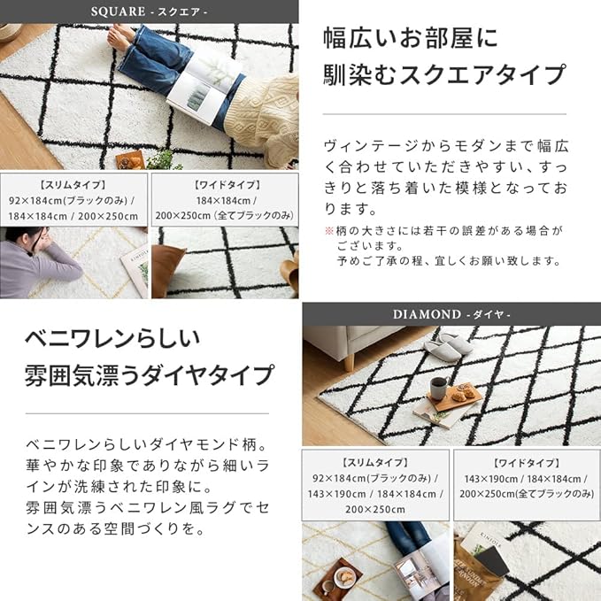 エア・リゾーム ラグマット 洗える おしゃれ ベニワレン風モロッカンデザインラグ 184 184cm スクエア(スリムライン)