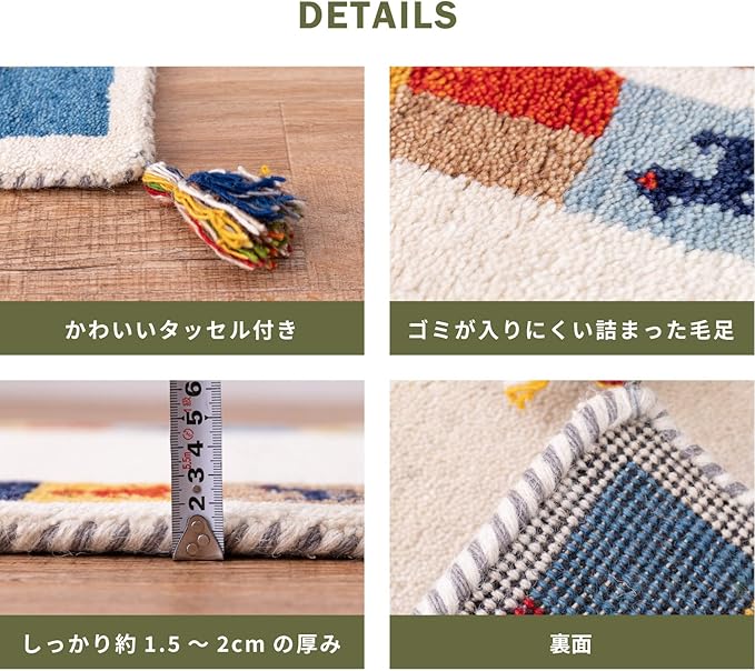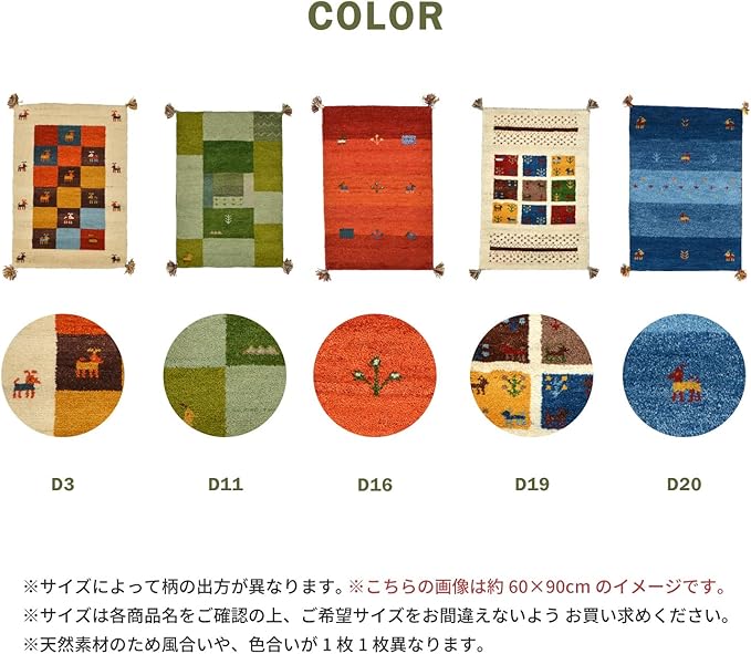 丁寧な手織り手法で使用時間の経過とともに味わいが深まる「ギャッベ」。ウール素材は暖かく冬に適しているイメージがありますが、温度差の激しい環境で育った羊から取れる羊毛(ウール)は、保温性と湿度を調節する機能に優れています。夏の湿気にも適しておりオールシーズンご使用いただける素材です。