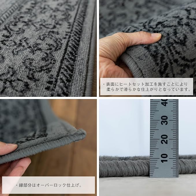 【輸入カーペットを安心してご利用いただくためのお願い】 ●輸入ラグに関して ※同じ商品でも製造ロットの違いによって、サイズや、色味、柄模様の左右が反転していたり、位置がズレている場合がございます。ただし、現地の工場や倉庫での検品をクリアした商品を輸入しています。あらかじめご了承くださいませ。/ ●においに関して ※ご使用当初、裏面に塗られる仕上げの接着塗料(ラテックス剤)のにおいがする場合がございます。人体への影響はありませんが、においに敏感の方や、ご心配の方はご理解の上ご購入お願いいたします。開封後常温のもとで気化(蒸発)するため、においはご使用につれてなくなります。気になる場合は風通しの良いところで陰干ししていただきますと、より早く解消されます。/ ●サイズに関して ※カーペットの製法上、表示サイズより 0~4% の誤差がございます。/ ※いずれも商品の初期不良ではございませんので返品・交換は行なっておりません。(※お客様で返品の送料ご負担によるキャンセルは、返品規定に基づきお受けさせていただきます。)/ ※裏面の製品シールは剥がさないでご使用ください。