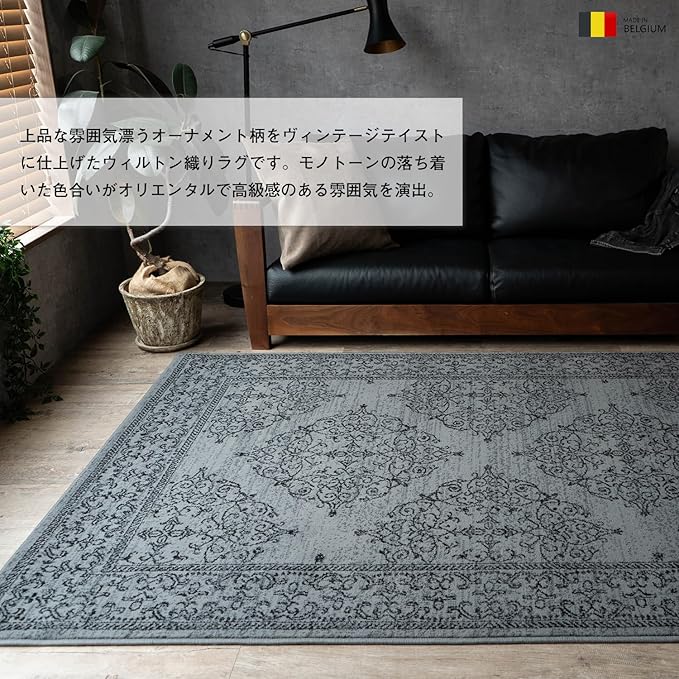 サヤンサヤン オーナメント ラグマット オーディン 140x200 1.5畳 グレー ベルギー製