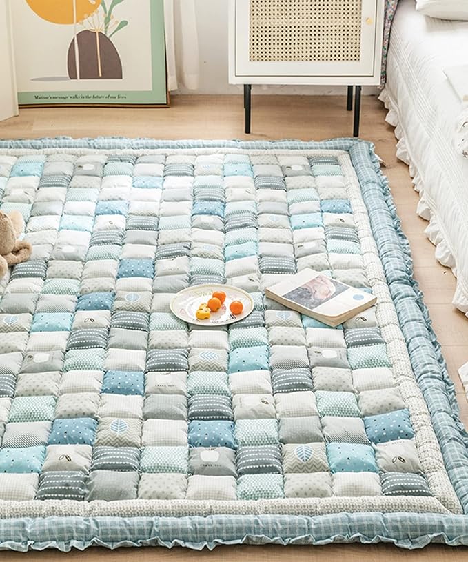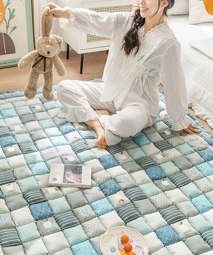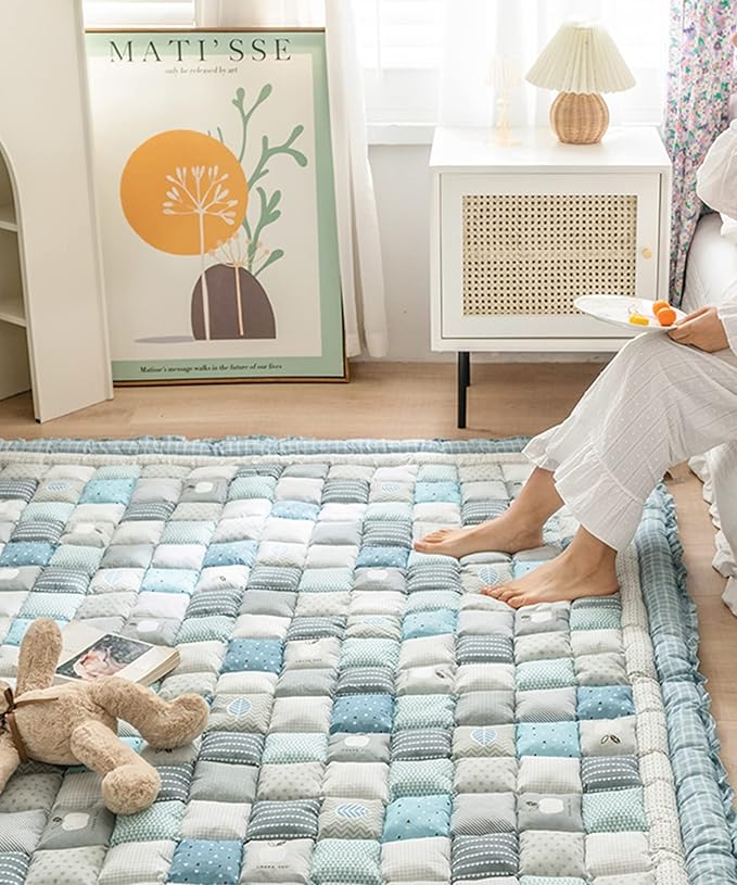 ラグ おしゃれ カーペット 綿100% 可愛い かわいい 韓国 インテリア キルティング 室内マット 玄関 モダン 187 96.6cm SNS映え 韓国雑貨 ふわふわキルティングラグ (ライトブルー)