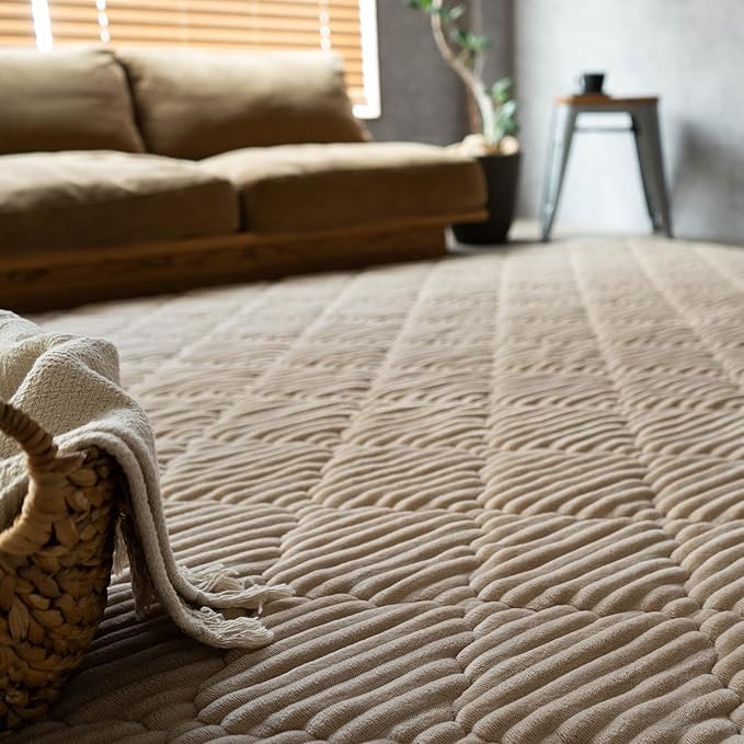 サヤンサヤン ヌア フランネル キルト くすみ KUSUMI 抗菌 防臭 洗える 無地 ラグ マット 190x190 2畳 サンドモカ ベージュ