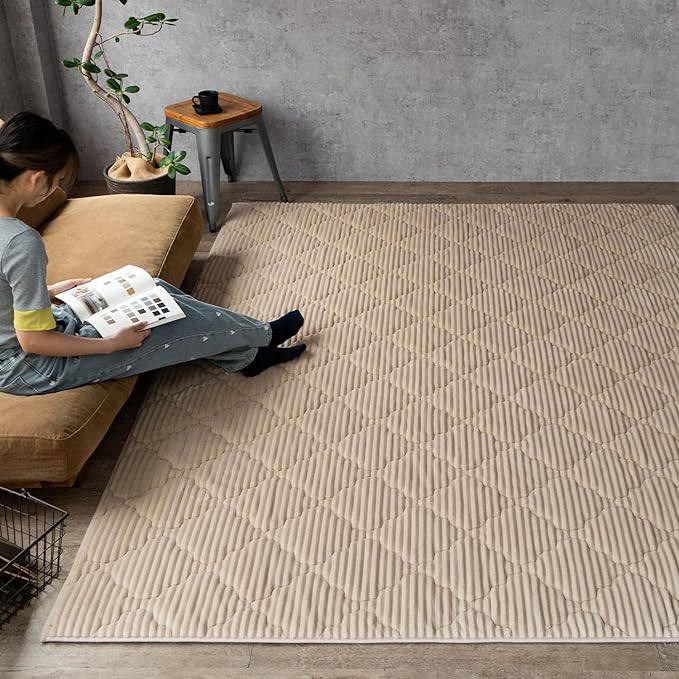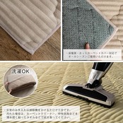 【備考】 丸洗い可能(洗濯ネットを使用し、手洗いコースをお選び下さい。洗濯機の取り扱い説明書をご確認の上、適した洗濯コースをお選びください。)洗濯後はすぐに形を整え日陰で干してください。乾燥機は使用できません。大きめサイズの洗濯に関しては、コインランドリー等をご使用ください。(190 190cm以上推奨)ご自宅の洗濯機容量が異なるため、お客様にてご確認ください。 / ※こちらの画像は 190x240cm を使用しております。 / 床暖房の上敷き、ホットカーペットカバー対応 。 / 圧縮梱包での配送となります。(商品がお手元に届きましたら、なるべく早く開封していただきますようお願いいたします。圧縮梱包のまま長時間放置すると形状を復元するのに時間がかかる場合がございます。) ●洗濯機の目安容量は、1~1.5帖用以下の場合12kg以上、2帖用以上の場合16kg以上の洗濯機をご使用ください。※3帖用は20kg以上または手洗いです。ラグの大きさによっては、洗濯機で洗えない場合もございますので、収まりが悪い場合はコインランドリーや手洗い等ゆとりのある洗濯をお願い致します。