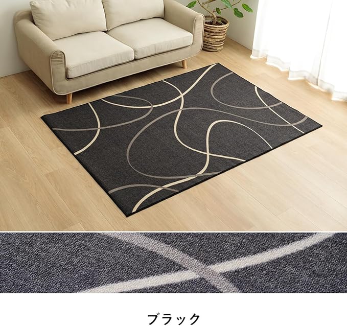 イケヒコ ラグ カーペット マット 敷き 長方形 スパニッシュ ブラック 約133 190cm 撥水 水をはじく デスクカーペット 傷防止 音軽減 洗える モダン シンプル #1341480038203