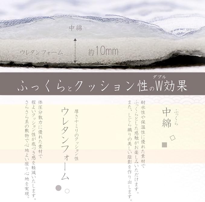 ・ふっくらボリュームあるラグなのに、肌に涼やか。秘密は、4層構造による表綿100%しじら織り。