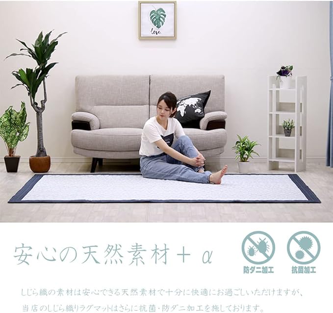 ・[品名]しじら織りラグマット [サイズ]190 240cm [素材]表地:綿100%、中材:ウレタンフォーム/綿 裏面:不織布(滑り止め加工付)