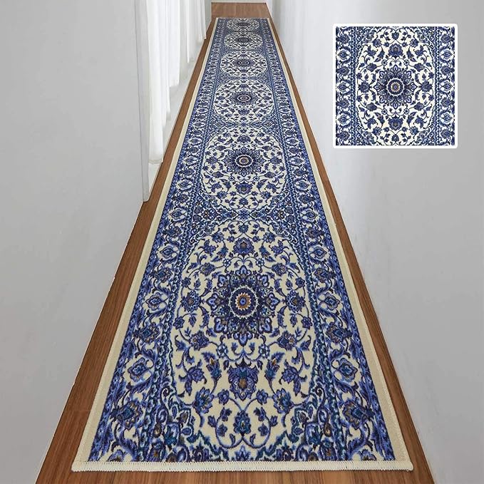San-Luna 廊下 カーペット 廊下敷き ロング 【エミール】 65cm 120cm 日本製 ロングマット 廊下 マット ラグ ブランド 高級 長い キッチン 床保護 抗菌 防臭 吸水 速乾 洗える 滑り止め 防滑 ブルー 青 65 120