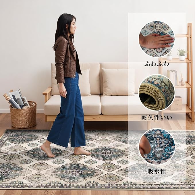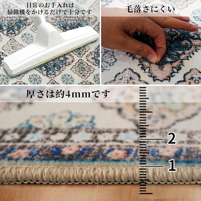 商品説明:ご使用当初、少し遊び毛が出ますが、ご使用するにつれ出にくくなっていきます。・滑りやすい場所でのご使用は、市販のカーペット用の滑り止めネットのご使用をお勧めします。