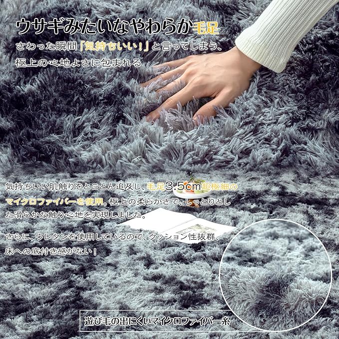【ふわふわ柔らかな肌触り】カーペット表面の生地は上質なポリエステルを採用し、色褪せず繊細でやわらかな肌触りを実現しました。ふわふわというよりも、しっとりなめらかな触り心地とゴージャスな見た目が魅力。