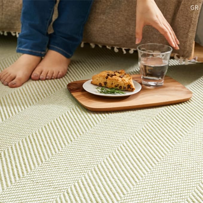 萩原 ラグ グリーン 約190 190cm 「ボーナ」 ヘリンボンラグ 洗濯機OK 滑りにくい加工 ホット対応