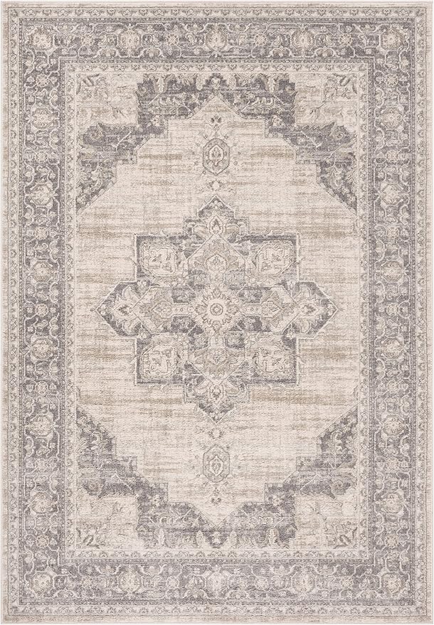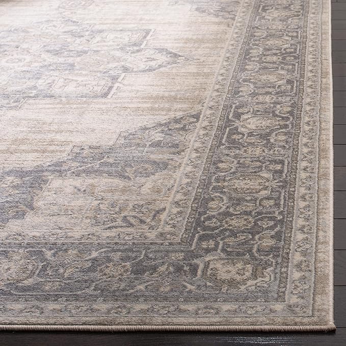 SAFAVIEH (サファビア) ニューヨーク発 Brentwood Collection (ブレントウッドコレクション) エリアラグ ネイビー/ライトグレー 160 229cm メダリオン ディストレスド加工 毛が抜けないタイプ リビング/ベッドルーム/ダイニング/ホームオフィス 【日本正規輸入品】 BNT865B