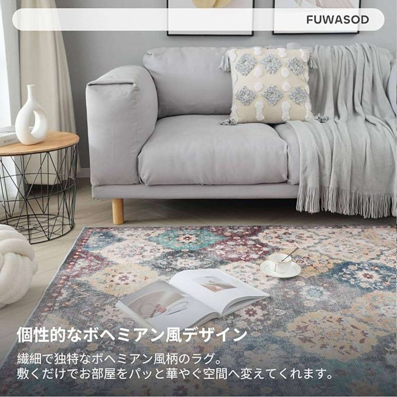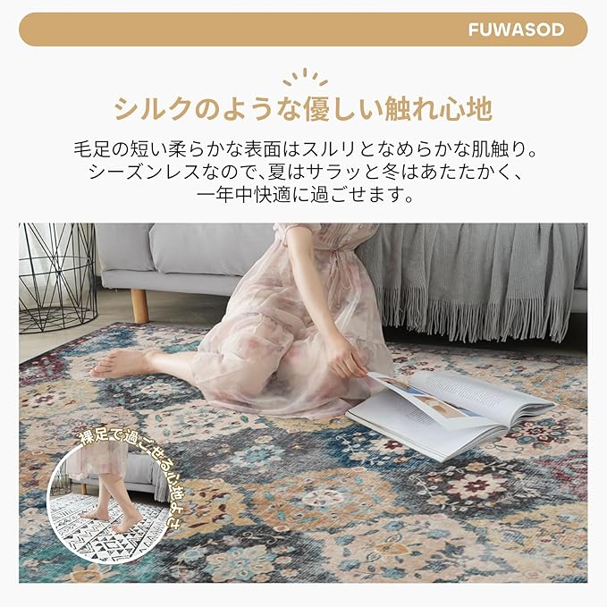 【ボヘミアンデザイン】ボヘミアン風の柄は、自由で多彩な色使いや幾何学模様、ペイズリー、花柄など、エキゾチックでアーティスティックなデザインが特徴です。繊細で美しい柄のボヘミアン柄のラグを一枚敷くだけで、お部屋をパッと華やぐ空間へ変えてくれます。リビングルーム、ベッドルーム、キッチン、玄関など様々なシーンで活躍いただけます。