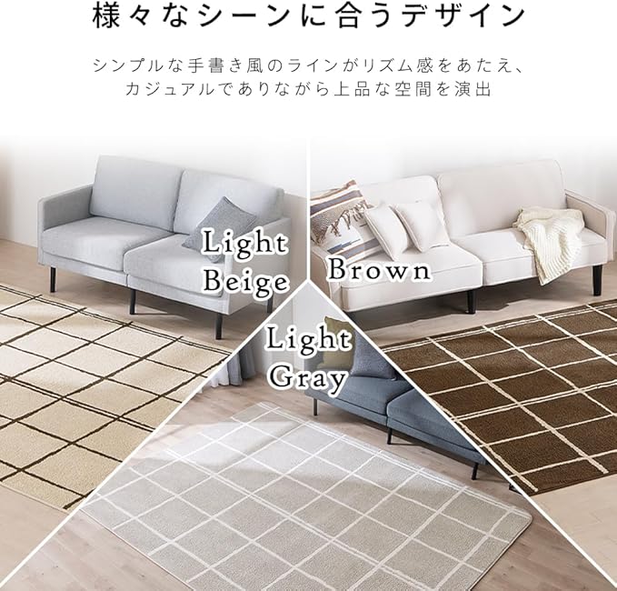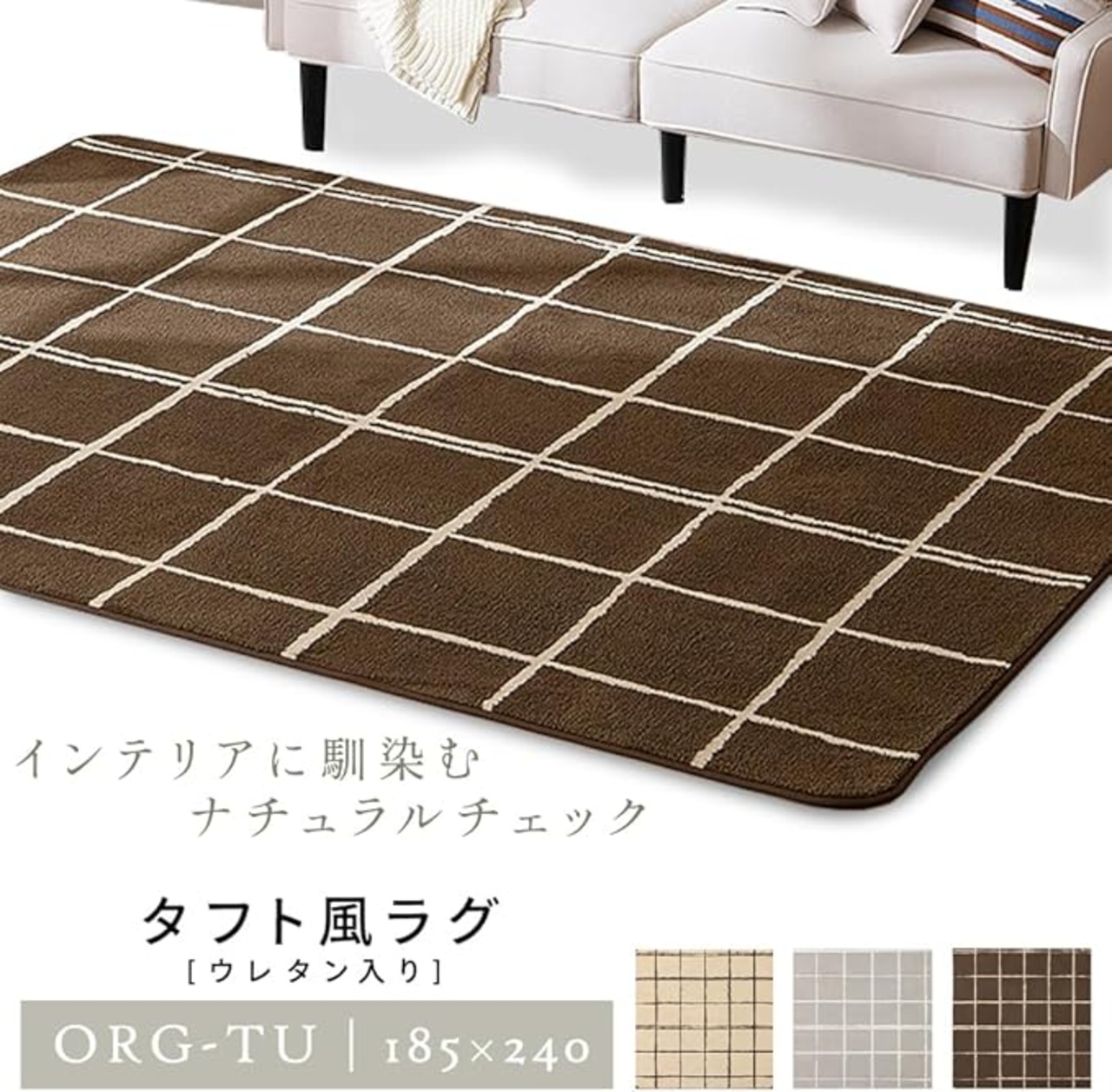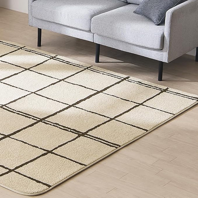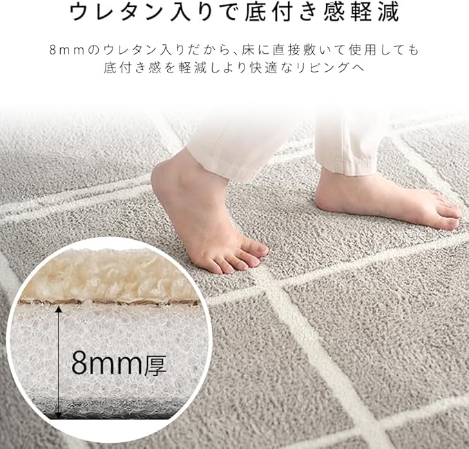 8mmのウレタンが入った、ナチュラルチェックのタフト風ラグです。