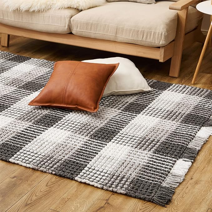 萩原 ラグ ラグマット エルフ ブラック 約100 140cm 洗える ワッフル風 チェック柄 小さめ